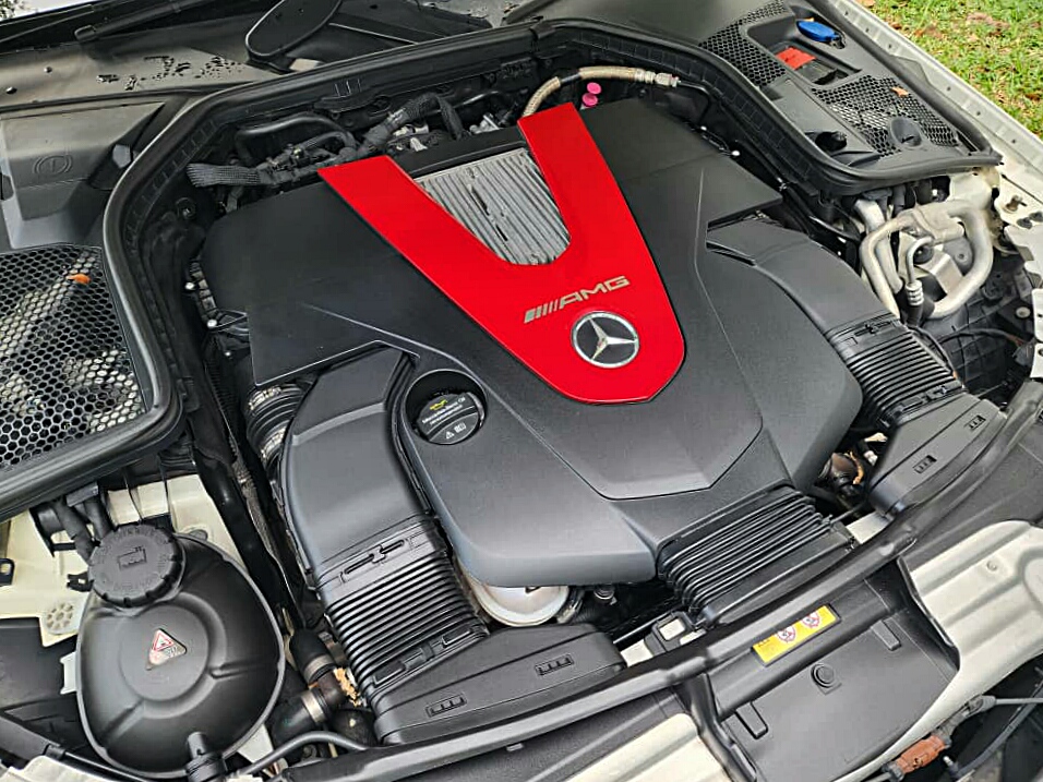M276 DELA 30 biturbo V6 in its 3.0 litre form, the twin-scroll turbocharged mill offering a slight increase in power output compared with a peak 362 PS Maximum torque remains unchanged at 520 Nm, 2,000 rpm – 4,200 rpm. As expected, 0 to 100 km/h in 4.6 seconds and maxing out at 250 km/h.